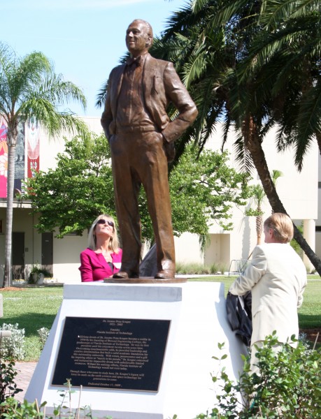MELBOURNE, FLA.—It took Florida Institute of Technology Founding President Jerome P. Keuper just a matter of months to begin the university 51 years ago. A no-less dedicated committee of five devoted three years raising funds for a life-size bronze statue of Keuper, which was unveiled at the university’s annual homecoming celebration recently.