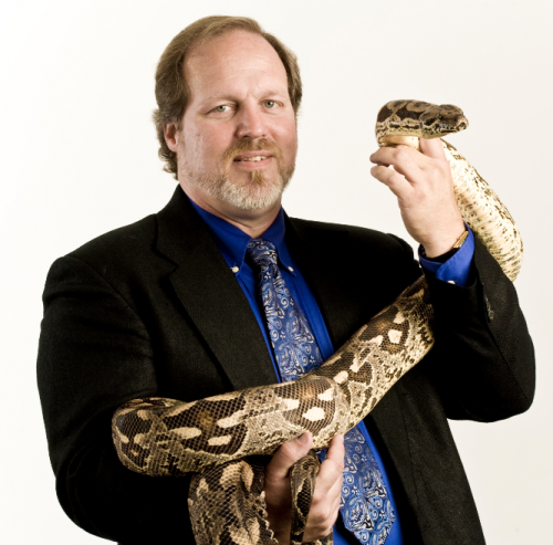 Training Burmese pythons is all in a day’s work for Associate Professor of Biological Sciences Michael Grace. He earned a three-year, $369,000 grant from the National Science Foundation (NSF) for his work on the mechanisms of infrared imaging in pit vipers, pythons and boas. The novel research joins biology and psychology students in a project with a behavioral psychology component.