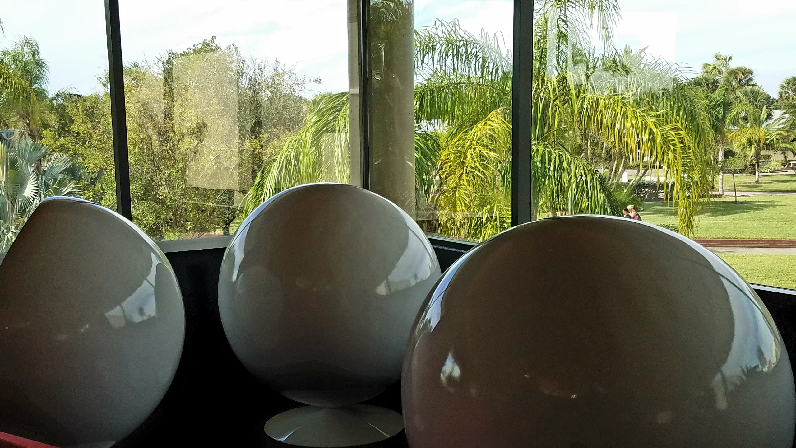 If you are looking for a quite place to seclude yourself. The second floor of the Evans Library DSL has these really wonderful sphere chairs. When you sit in them, you enjoy a beautiful view of the academic quad while feeling cut off from the rest of the world. The best part is that you are in a central location between computers, white boards and group conference rooms.