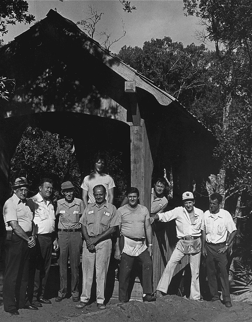 Keuper directed Dale Simcox, Florida Tech’s superintendent of buildings and grounds, to figure out a solution. The project took five years to complete. Later, Simcox modestly described it as a “unique undertaking.” “Miraculous” would be a more accurate description. Simcox drew on the talents of Florida Tech’s groundskeepers Hank Hughes and Jack Thompson. Forty years later, Hughes recalls the daily drives to the space center. Piece by piece, Hughes and Thompson carefully disassembled the V.I.C. souvenir shop building, placed the parts on a flatbed truck, and returned to Melbourne, where they reassembled it on the west side of Babcock Street. It was a colossal undertaking. As a finishing touch, Keuper directed Hughes and Thompson to add a brick façade to the structure’s front.