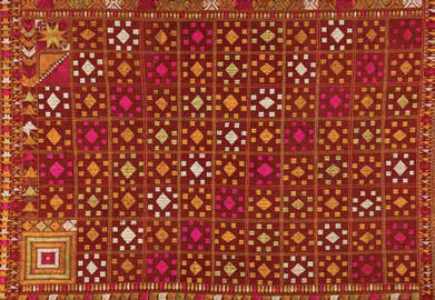 Image: Shawl (phulkari), Punjab, India, c. early 20th century. Cotton, plain woven, satin stitch embroidered. Gift of Ruth Funk, 2004.01.28.