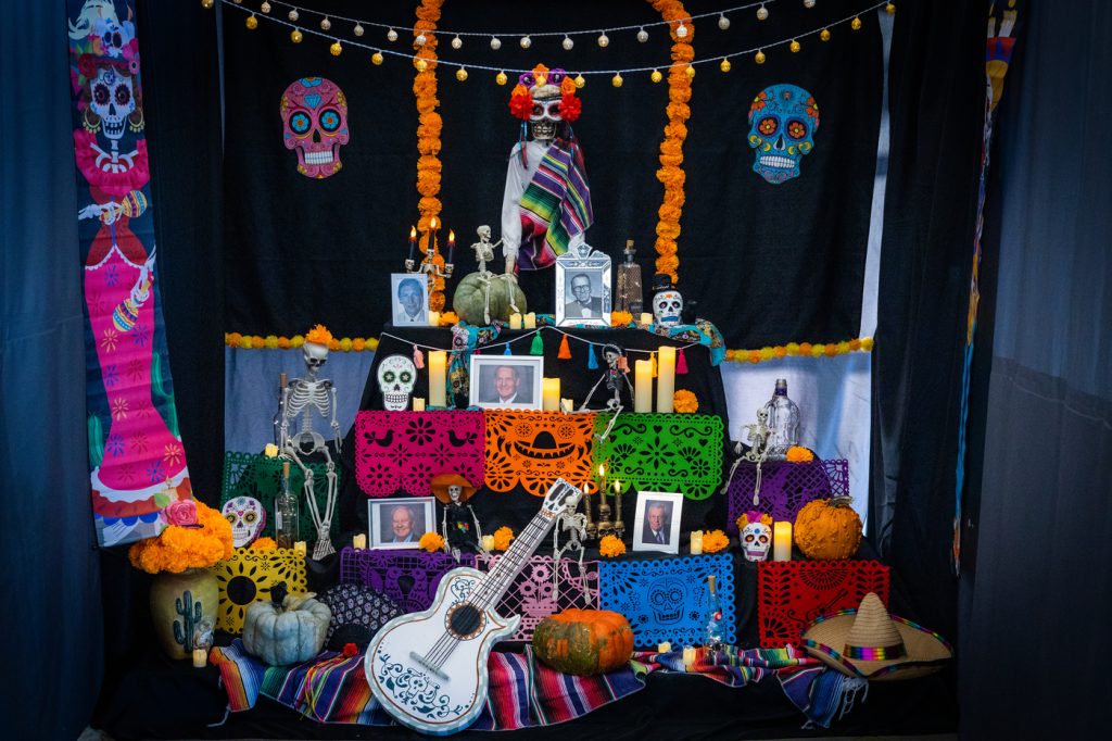 As they entered, guests walked pass a colorful ofrenda, an altar meant to welcome back the souls of the deceased on this special day. Initially featuring movie characters, the ofrenda was changed to include images of Florida Tech leaders who have passed away after a student from Mexico reached out to Campus Dining with that suggestion.