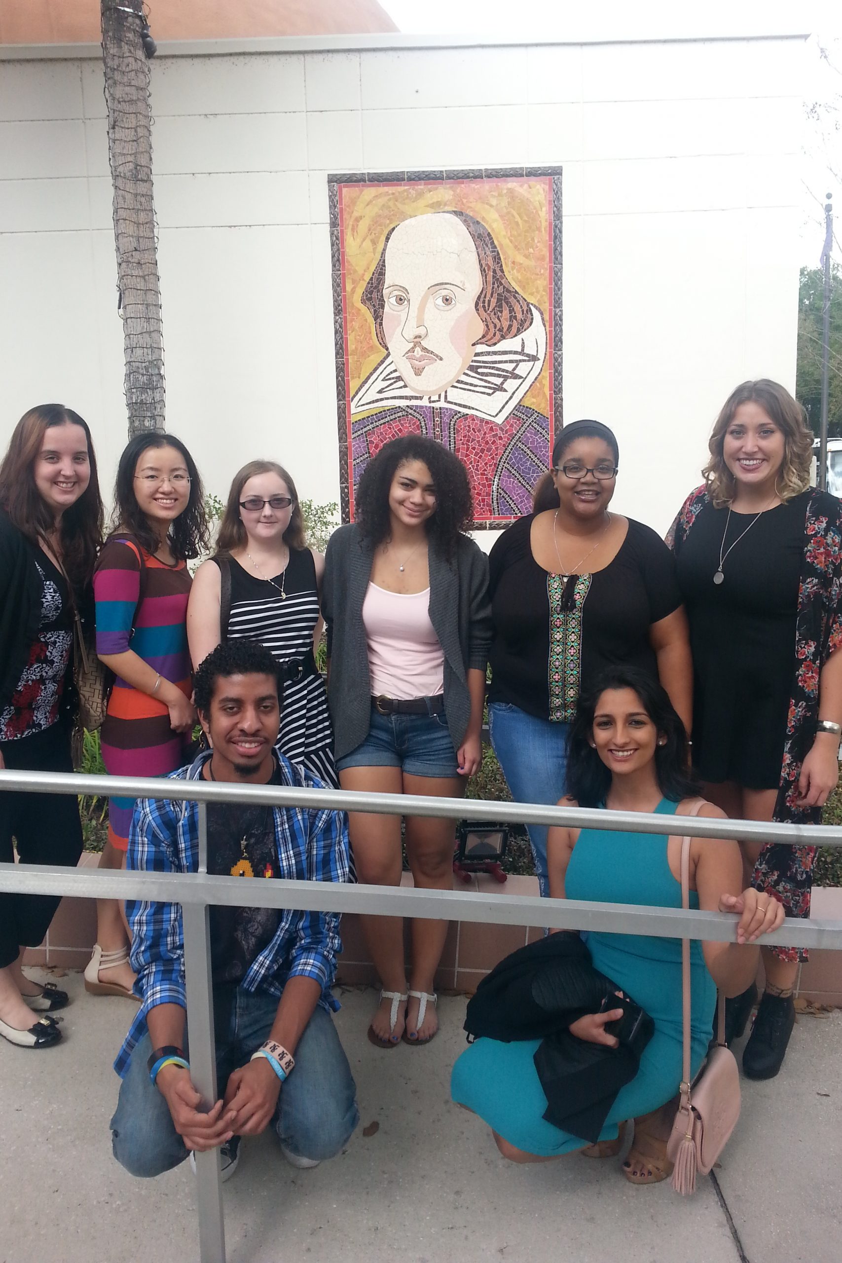 Remember those days back in elementary school when a field trip was the coolest part of class? Those fun filled days don’t have to be over! Here in the School of Arts & Communication, we get so many chances to go on field trips that blend classroom education with real world application. This semester, our first field trip was to the Orlando Shakespeare Theatre to see the play Henry V. Shakespeare is currently being taught in courses such as Civilization 1, Shakespeare and Film, and Writing About Literature. Although I already took Civilization 1 and Writing About Literature, this was a great opportunity to refresh my memory and help me visualize the characters and story in a way I couldn’t in class. In addition, I’ve never seen a Shakespeare play before and I heard from fellow classmates that it was a must. Needless to say, they were right! From the humor in the play to the projection of emotions, words that were once on a page came to life. After the play ended, the cast came out and had a Q&A (question and answer session) with the audience, which was a rewarding experience to engage with them. The cast gave advice on how to become a performer and shared details of all the funny and difficult parts of the job. Before returning to campus, the group stopped for lunch at Chipotle (love that place!) and had lunch together. Going on the field trip allowed me to get to know students in my department better and share experiences outside the classroom setting. I’m so glad I went on the field trip and can’t wait for the next one! Check out what some of my fellow classmates had to say about the trip: