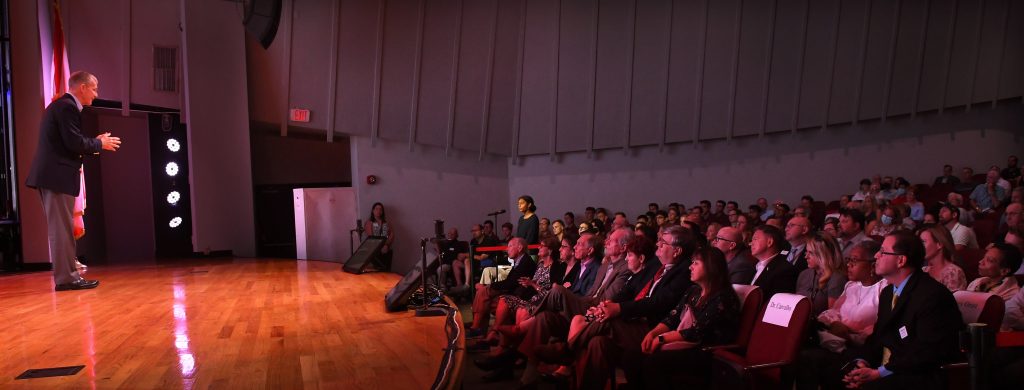 “So General, on behalf of your Florida Tech family, welcome home,” Carvalho said, before addressing the audience: “It is a true honor to have a leader of Gen. McChrystal’s experience join us this evening and share his insights.”