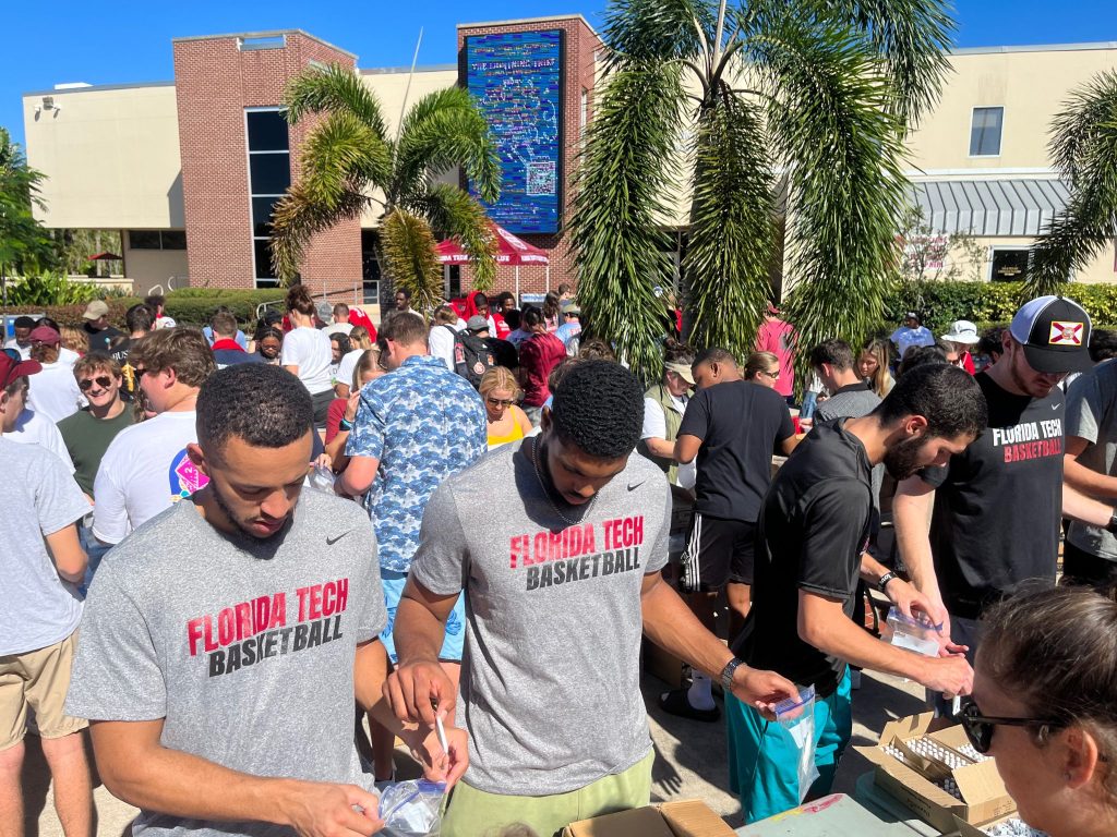 Florida Tech’s annual Big Day of Service brought together 168 participants, including various academic departments and numerous student organizations, to package roughly 8,000 hygiene kits in partnership with United Way of Brevard.