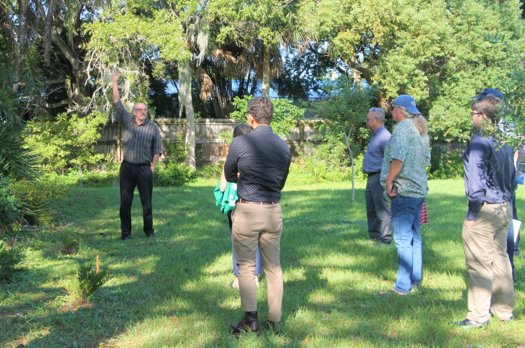 The City of Melbourne and its Beautification and Energy Efficiency Board (BEEB) visited the Center in late September to present the city’s Diamond Gems Award. Accepting were Ken Lindeman, professor and director of Florida Tech’s sustainability program, and Troy Nguyen, associate professor and a leader of the zero-energy efforts that made the building the most efficient on campus.