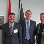 Locke, now a software engineer at Harris Corp., was joined in the event by his Florida Tech research adviser Marcus Hohlmann, associate professor in the Department of Physics and Space Sciences and the project’s principal investigator. Also attending was Michael Staib, physics graduate student, who worked on the project. Their team has been researching the emerging technology of muon tomography, which applies state-of-the-art detectors of subatomic particles originally developed for basic research in particle physics to the detection of nuclear contraband in cargo.